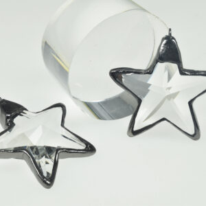 Clear Crystal Stars Wrapped in Gunmetal Pendants (43mm)