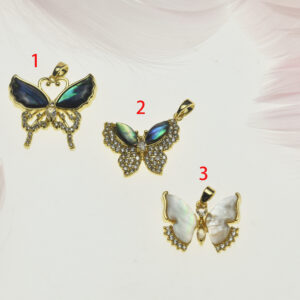 Butterfly Gold Cubic Zirconia with Shell Pendant