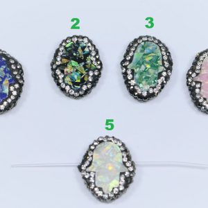 Lovely Bead Handmade Side Drilled Pave with Rhinestone Opalite Hamsa Hand (11x20mm) (Fatima Hand)