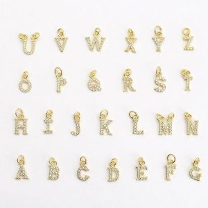 Small Gold Alphabet Letter Charms with CZ Rhinestones (8-9mm)