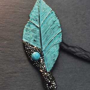 35x84mm Patina Bronze Pave Beads Lead Free Pewter Leaf Pendant / Charm