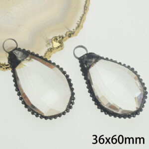 36x60mm Faceted Clear Crystal Teardrop Wrapped in Gunmetal with Ball Chain Pendant