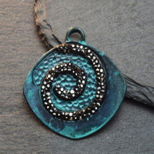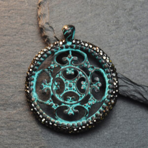 40x45mm Round Patina Bronze Pave Beads Lead Free Pewter Pendant / Charm