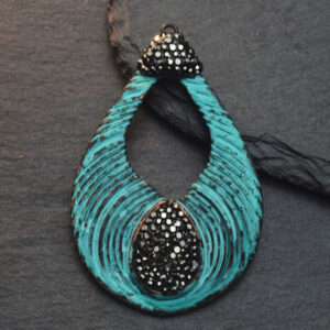 38x62mm Teardrop Patina Bronze Pave Beads Lead Free Pewter Pendant / Charm
