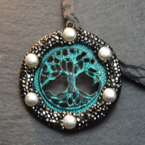 42x48mm Round Tree Of Life Patina Bronze Pave Beads Lead Free Pewter Pendant / Charm