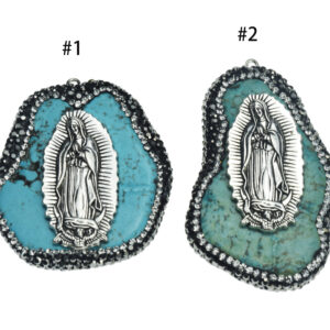 43-60mm Lovely bead Free Form Turquoise with Pave Virgen of Guadalupe Pendant
