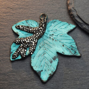 60mm Patina Bronze Pave Beads Lead Free Pewter Maple Leaf Pendant / Charm