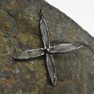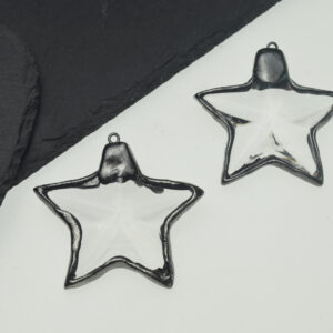 60mm Frosted Crystal Star Wrapped in Gunmetal Pendant