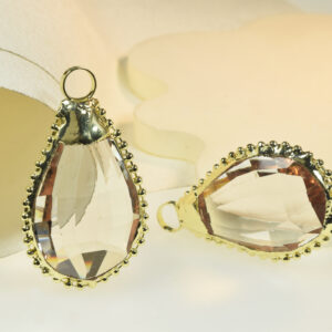 60x36mm Clear Faceted Crystal Wrapped in Gold with Ball Chain Pendant