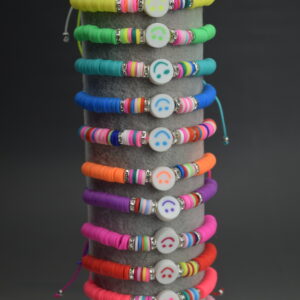 • 10mm Smiley Face with Clay Heishi Disc and Rhinestone Spacer Adjustable Bracelet