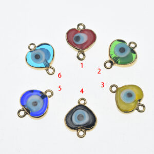 14mm Evil Eye Glass Heart Wrapped in Gold Connector