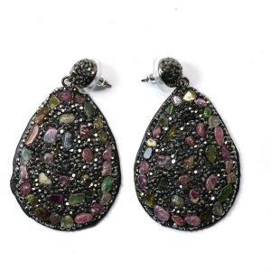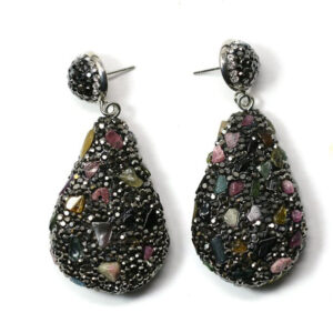 Tourmaline Puffy Teardrop with Pave Rhinestones Earring Pair (42mmx25mm)