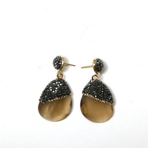 Topaz Crystal with Pave Rhinestones Teardrop Pair (25mmx20mm)
