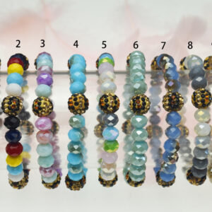 8mm Angelic Crystal Rondelle with Round Pave Rhinestone Beads Stretchy Bracelet, Shambala Bracelet (7.5 Inches)
