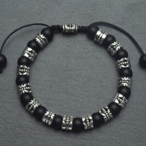 8mm Frosted Black Glass + (A257) Lead Free Pewter Braided Bracelet 7.5″