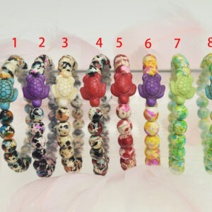 8mm Round Turquoise Gemstone with Tortoise Stretchy Bracelet 7.5 inch