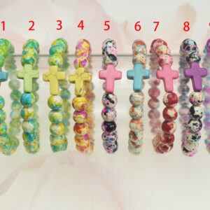 8mm Round Turquoise Gemstone with Cross Stretchy Bracelet 7.5 inch