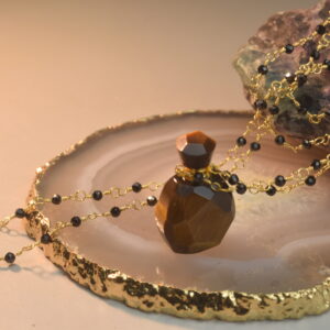Flat Round Tiger Eye Perfume Bottle Necklace