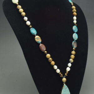 Handmade Suede Necklace with Large Hole Glass Pearl and a Turquoise Square Pendant