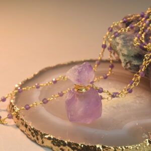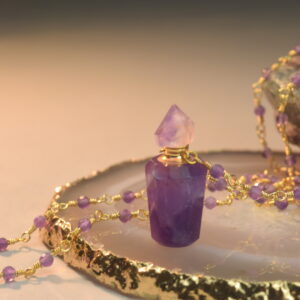 Round Bottom Cylinder Amethyst Perfume Bottle Necklace