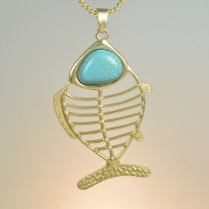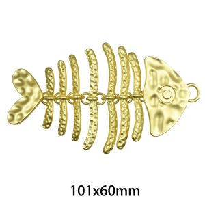 101x60mm Lead Free Pewter Matte Gold Fishbone Pendant (A40897)