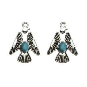 • 28x20mm Howlite Turquoise with Lead Free Pewter Bird Charm(B83365)