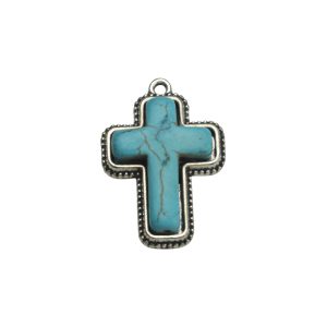 • 32.5×22.5mm Howlite Turquoise with Lead Free Pewter Cross Pendant(B80112)
