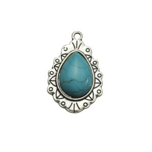 • 32.5x22mm Antique Silver Green Howlite Turquoise Lead Free Pewter Tibetan Boho Style Teardrop Pendant(B80105)
