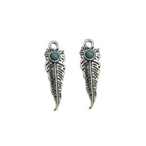 • 30x8mm Howlite Turquoise with Lead Free Pewter Leaf Charm(B83367)