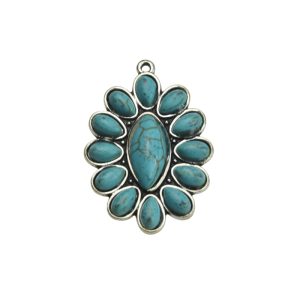 • 35x25mm Antique Silver Green Howlite Turquoise Lead Free Pewter Tibetan Boho Style Pendant(B79249)