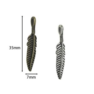 • 35x84mm Patina Bronze Pave Beads Lead Free Pewter Leaf Pendant / Charm