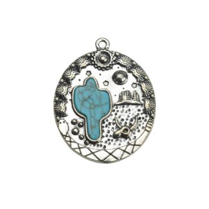 • 36×31.5mm Howlite Turquoise with Lead Free Pewter Cactus Charm(B77657)