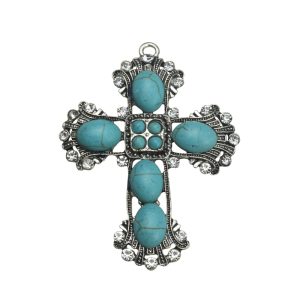 • 75x57mm Howlite Turquoise with Lead Free Pewter Cross Pendant(B28328)