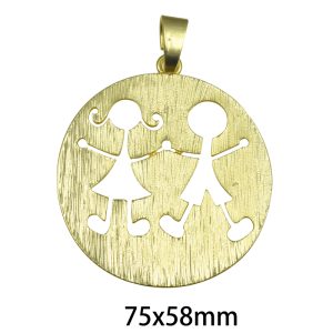• 75x58mm Lead Free Pewter Matte Gold Children Pendant (B74662)