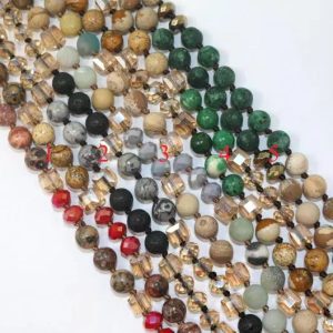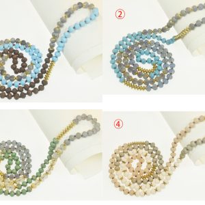 • Handmade Double Knotted Matte Crystal with Metal Beads Necklace 36 And 60 Inches Long