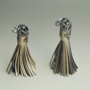• Handmade Pave Vegan Leather Tassels Pendant Boho Jewelry Style (98mm)(2 pcs. per Pack)