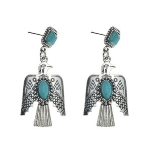 • Lovely Bead Handmade Southwestern Thunderbird with Blue Howlite Turquoise Earrings (Pair)-A61456