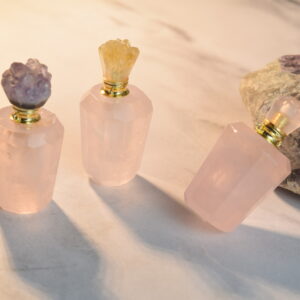 Large Round-bottomed Cylinder Rose Quartz Perfume Bottle