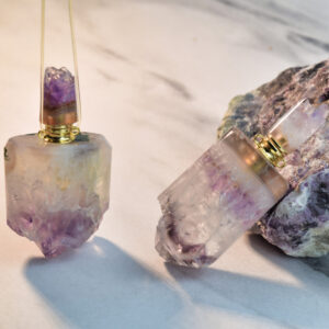 Round Bottom Cylinder Amethyst Perfume Bottle Necklace