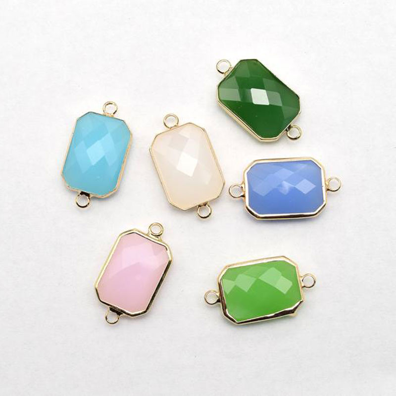• 13x18mm Rectangular Jade Connector Wrapped in Gold Metal
