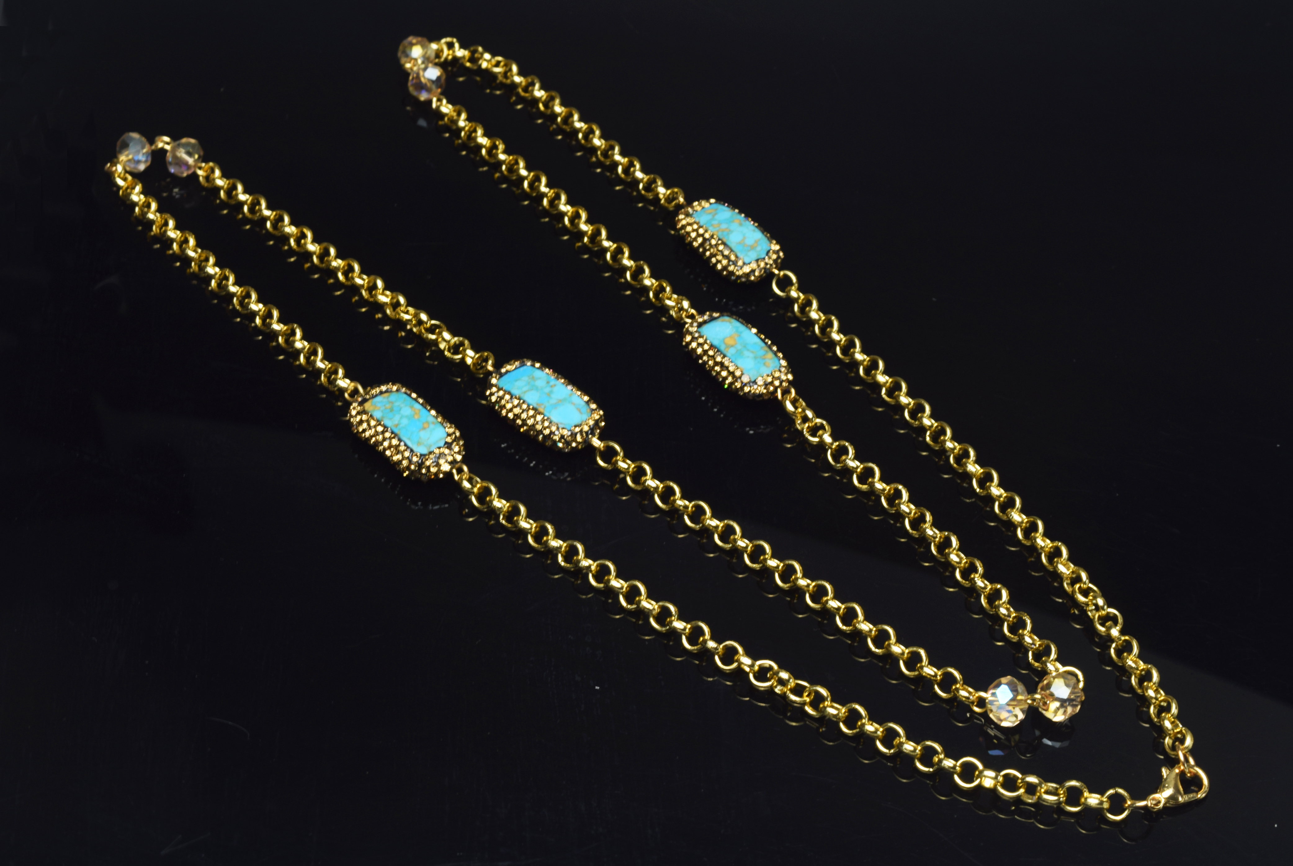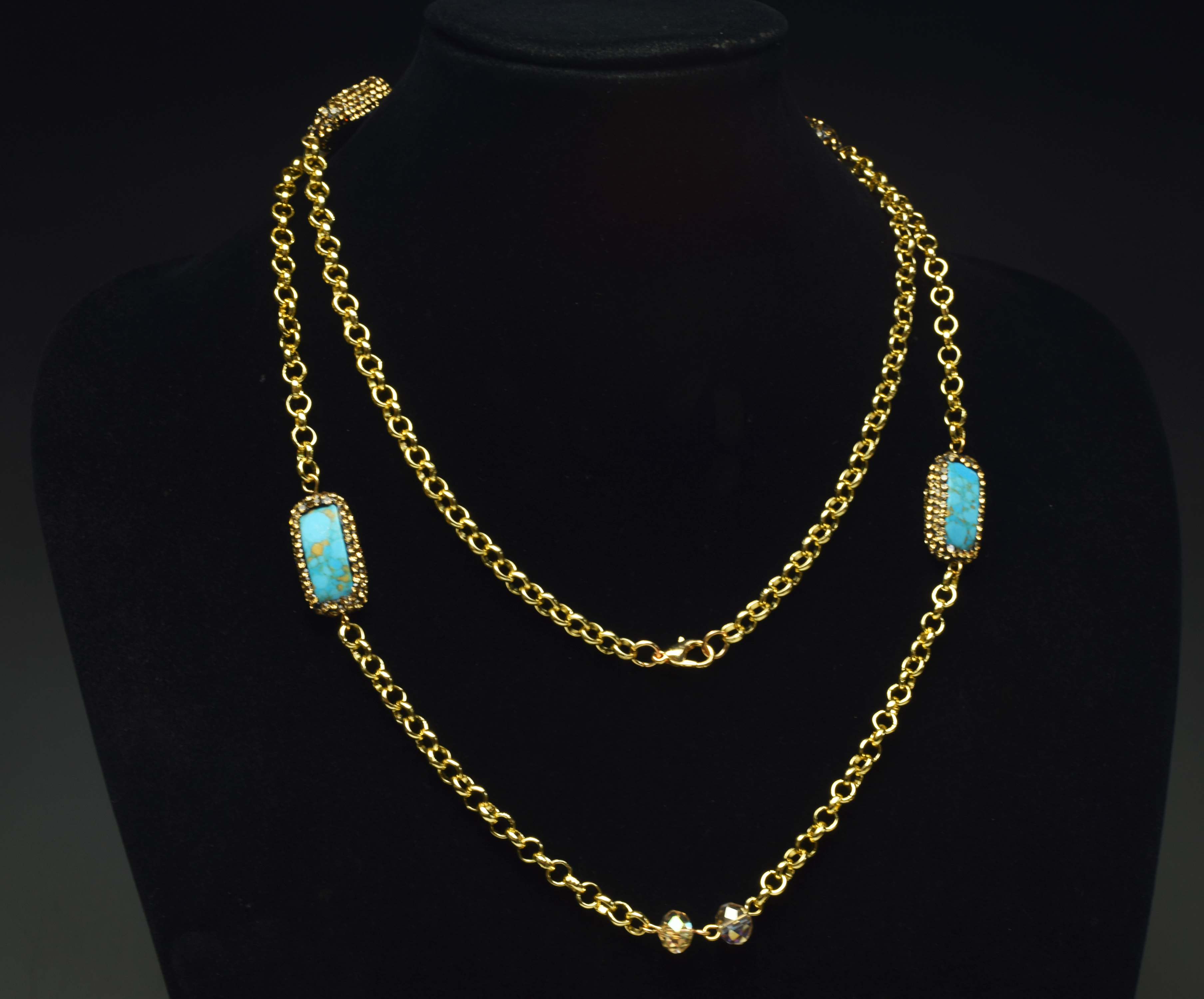 13x24mm Handmade 36 Inches Long Aluminum Rollo Chain with Pave Rhinestone Turquoise Link Necklace