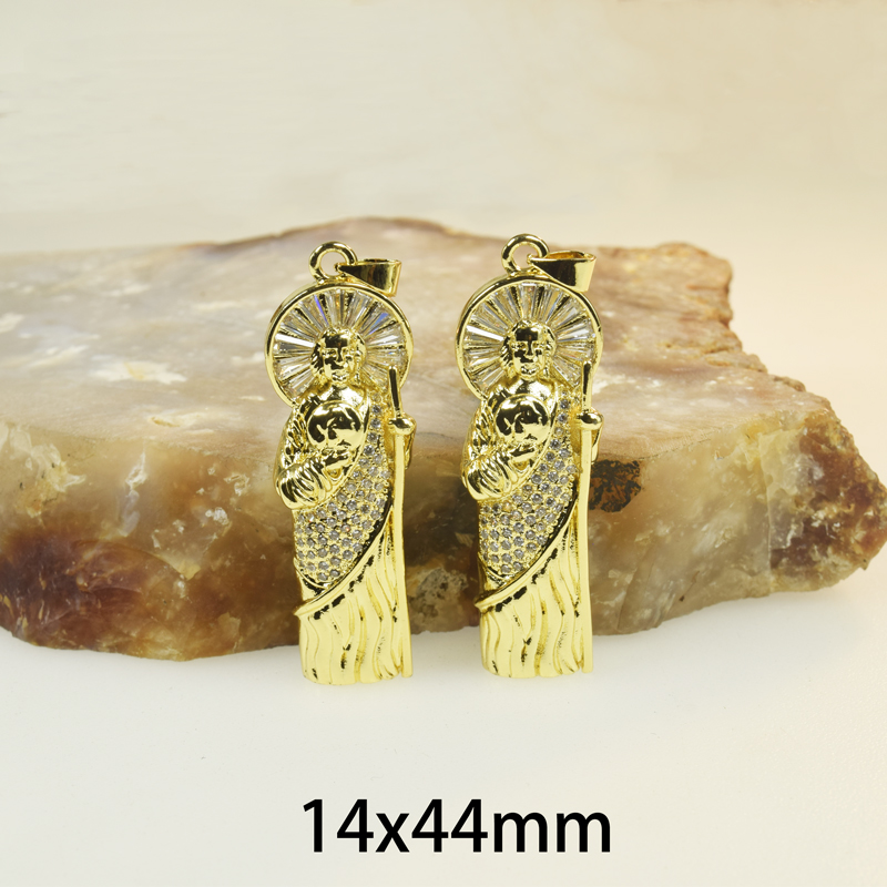 14x44mm Gold Micro Pave CZ Saint Benedict / San Benito Charm
