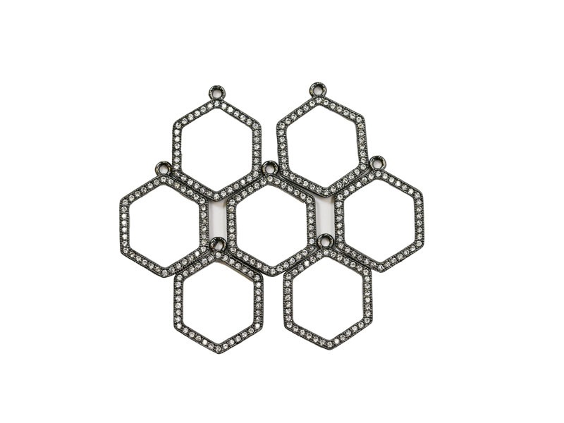 17mm Small Hexagon Gunmetal with Clear CZ Pave Rhinestone Charm