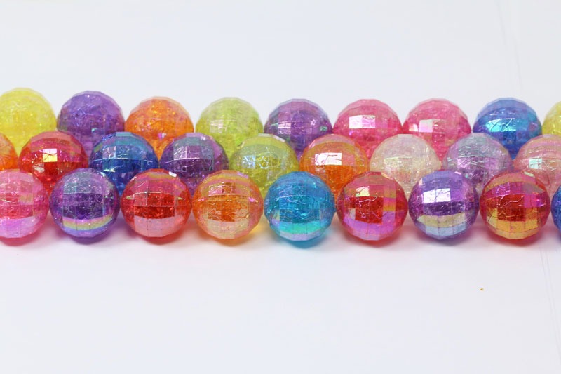20mm Round Faceted Multicolor Aurora Iridescent Crackle Bubble Gum Acrylic Bead Strand (15 pcs in the Strand) quantity