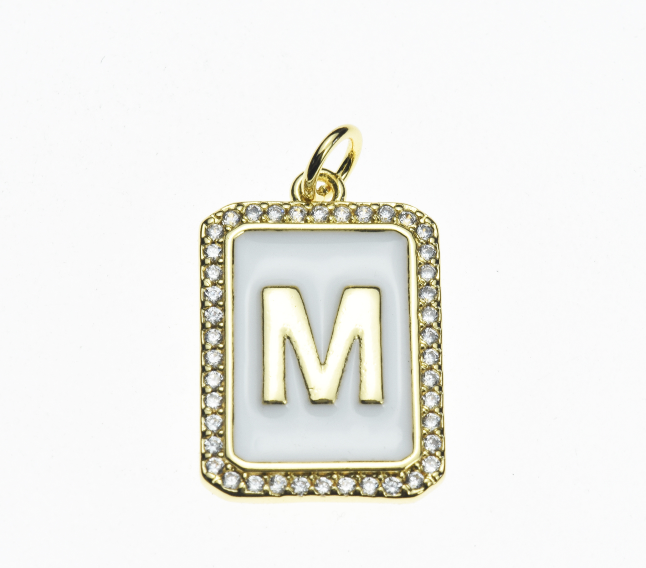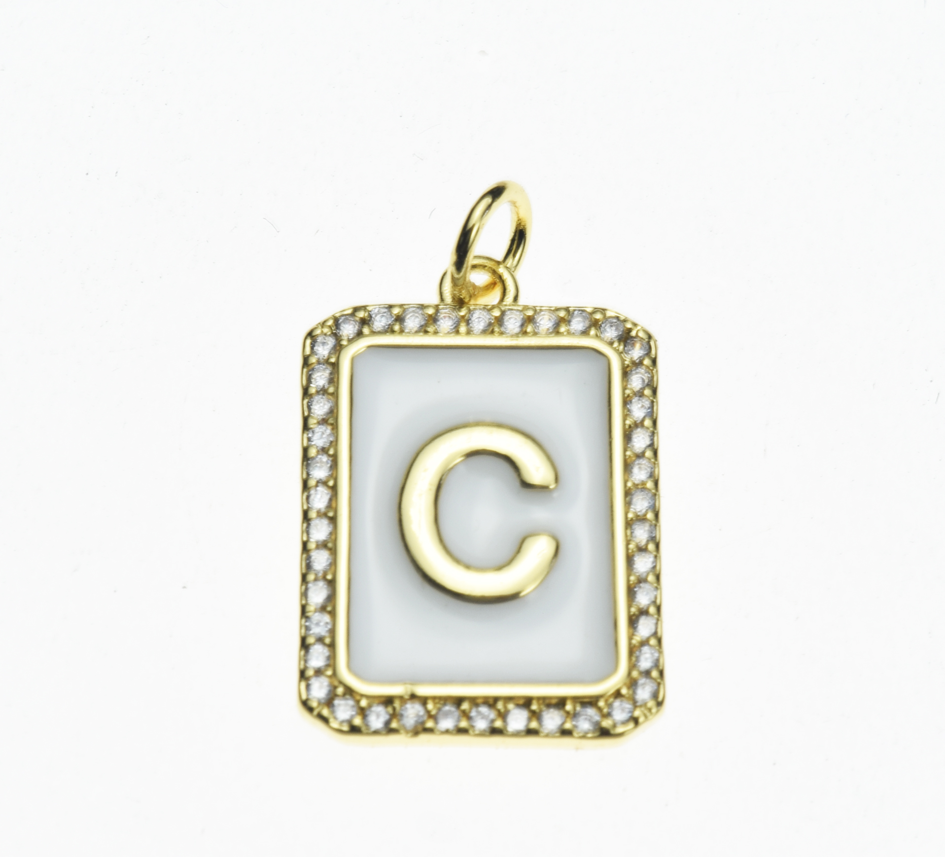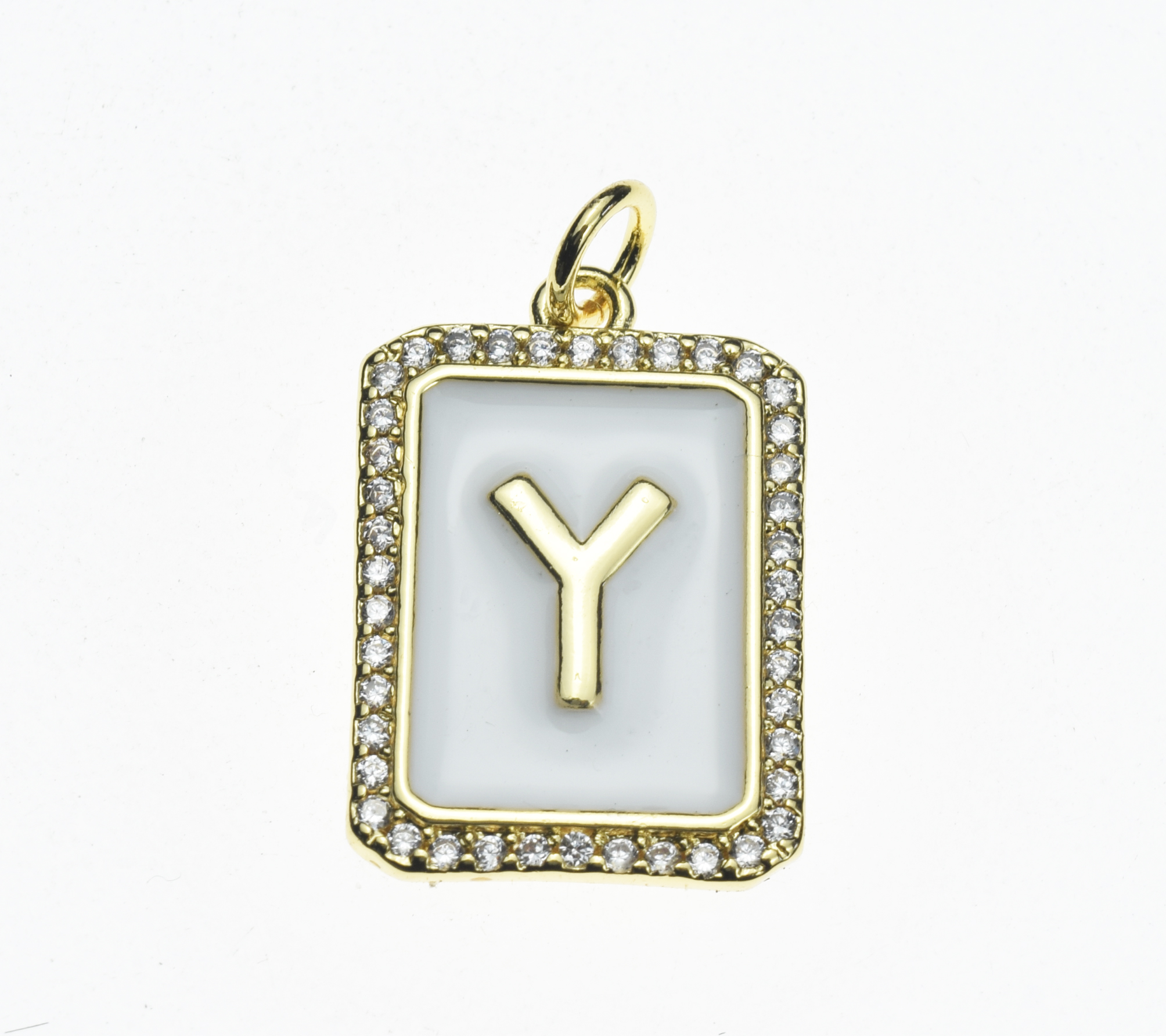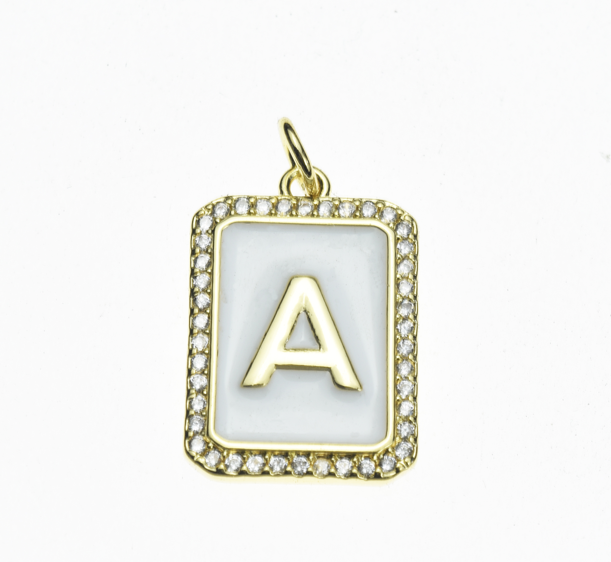 20X13mm Pave CZ Gold Alphabet Letter Enamel Pendants