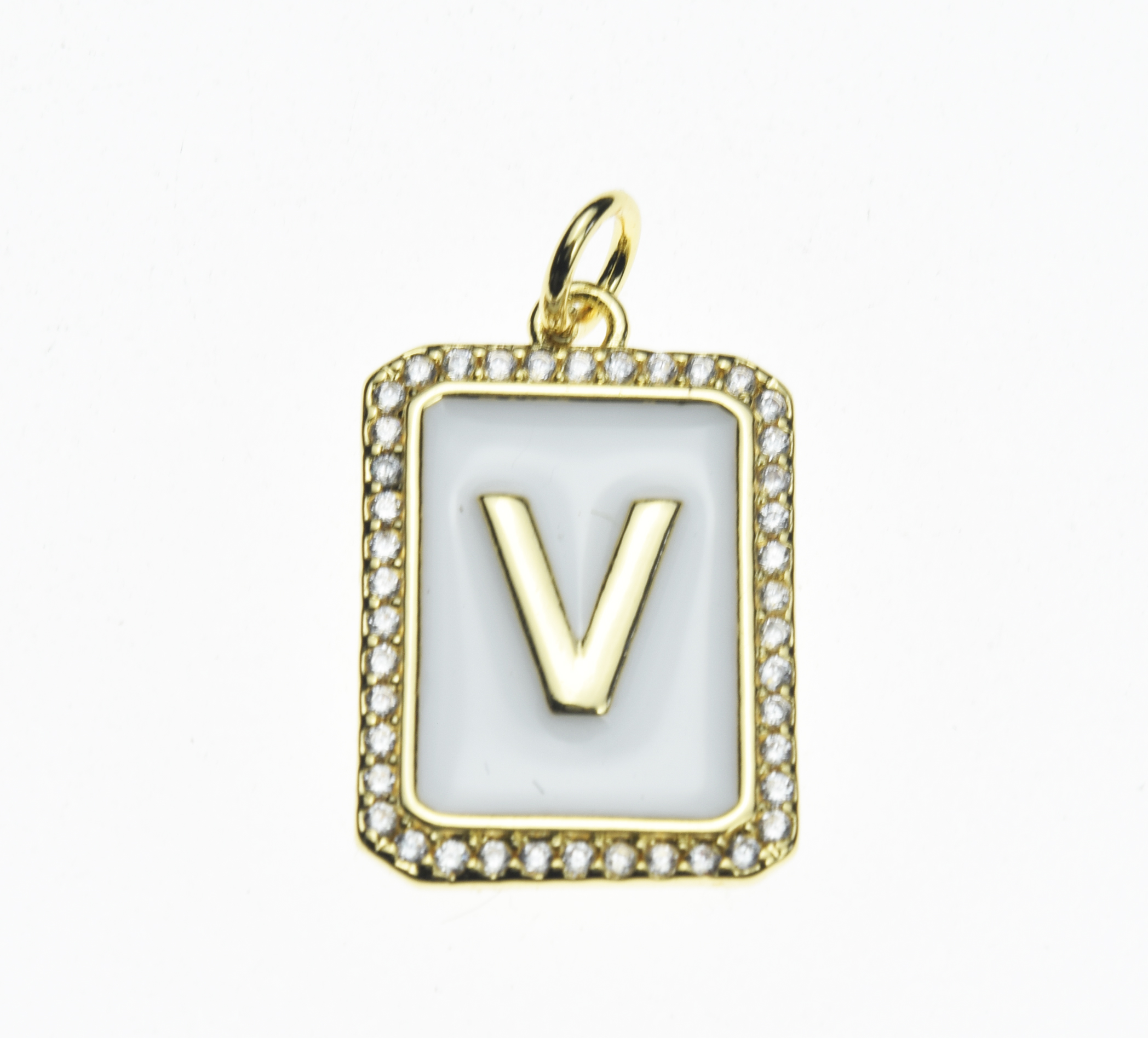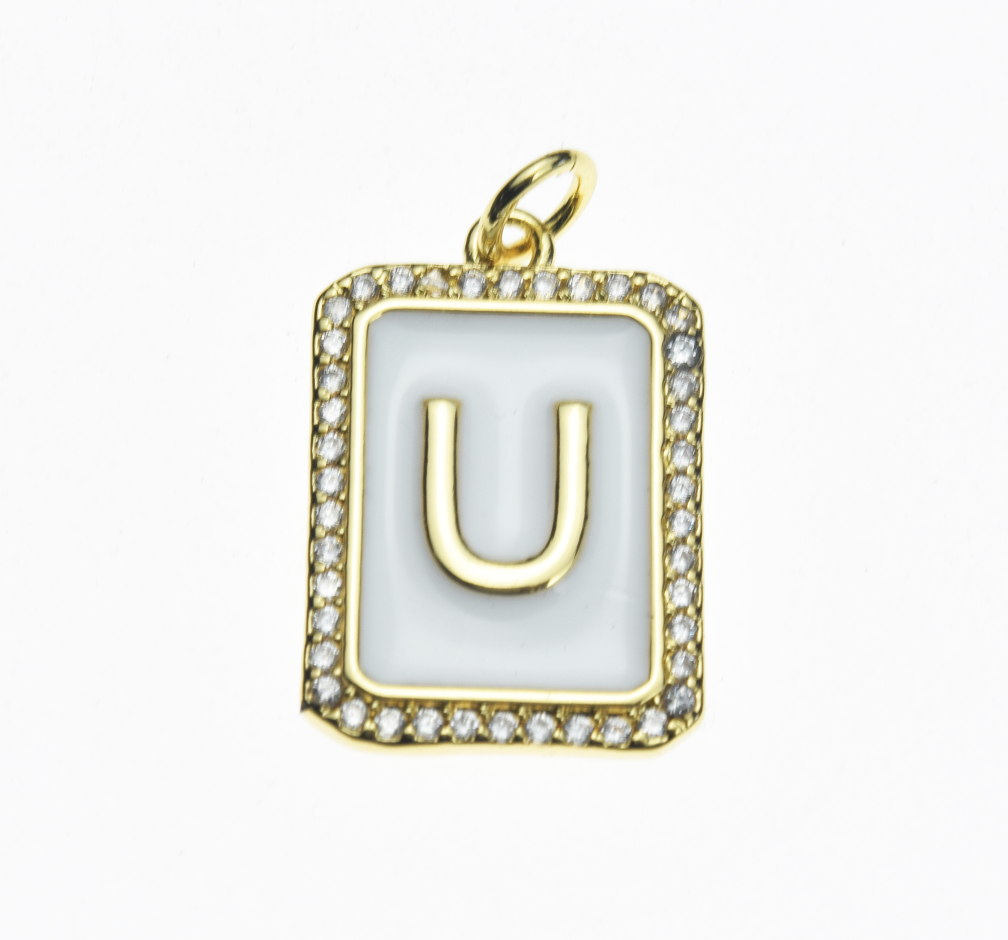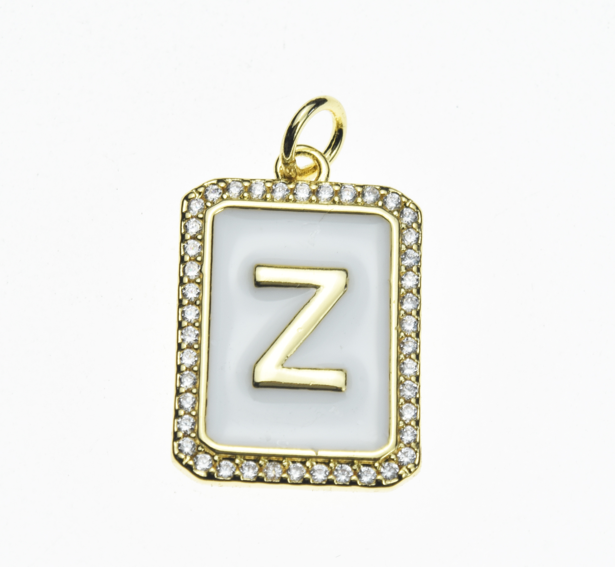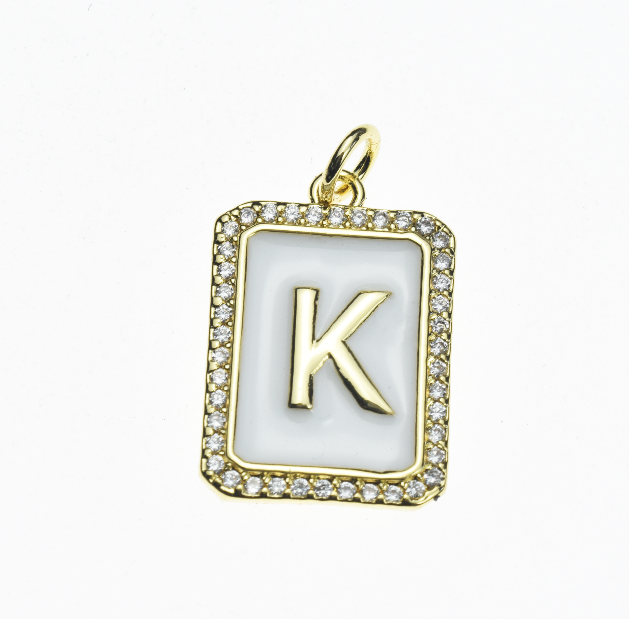 20X13mm Pave CZ Gold Alphabet Letter Enamel Pendants