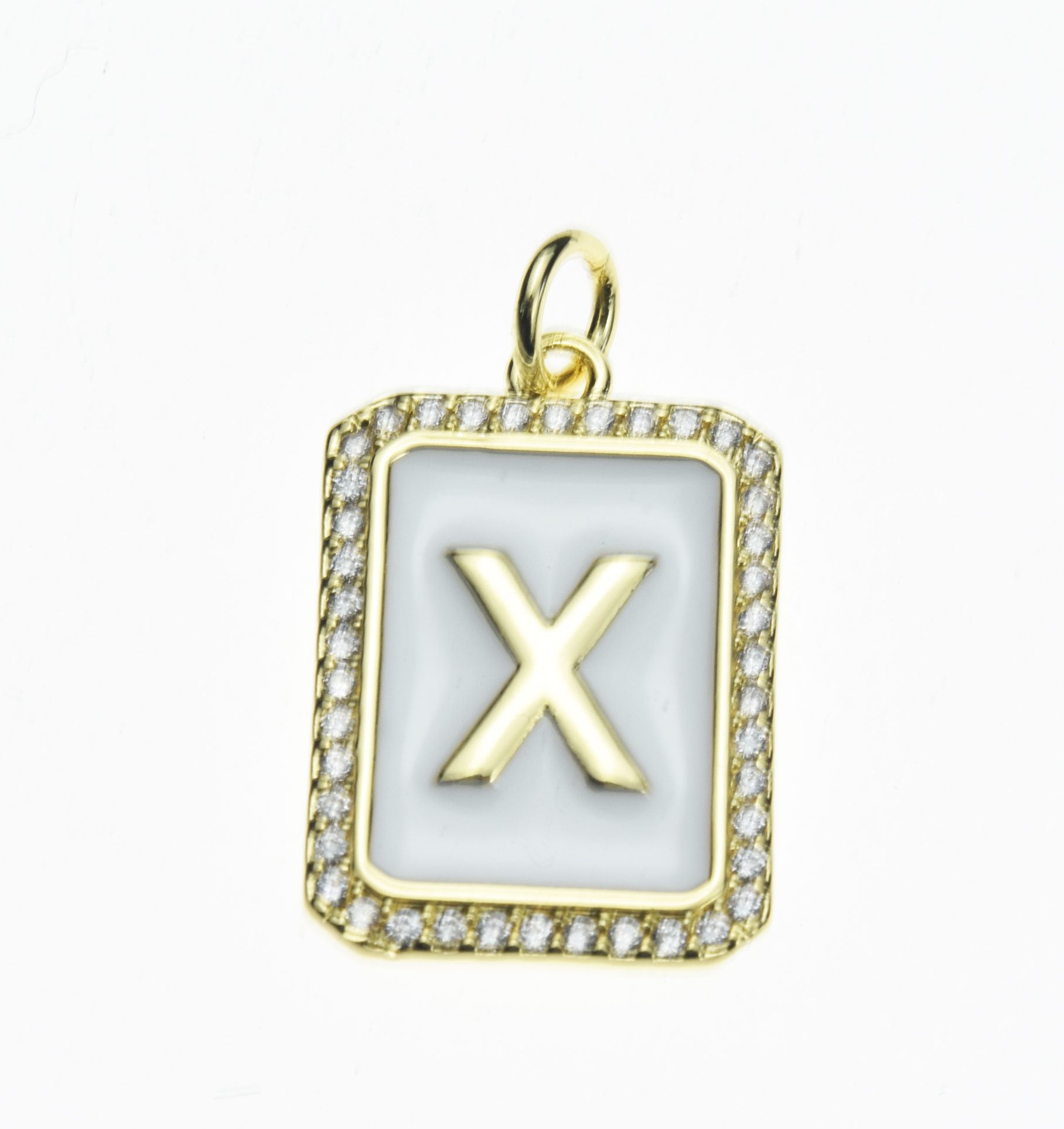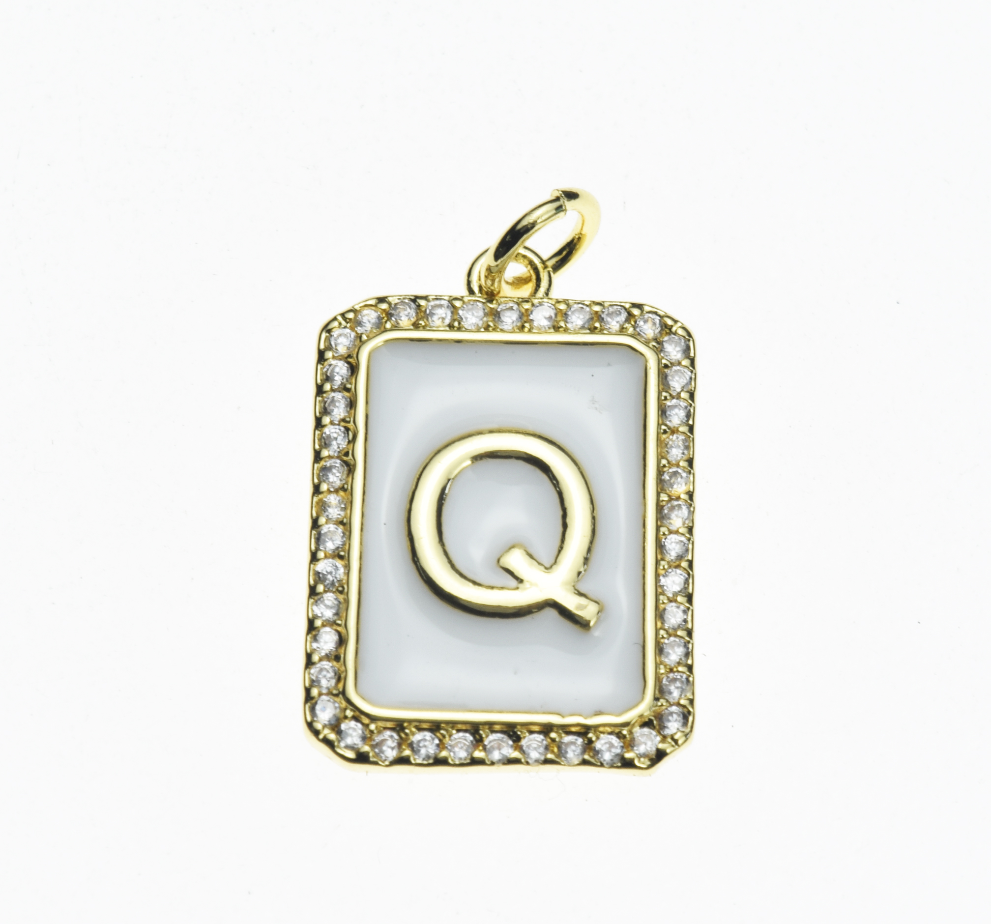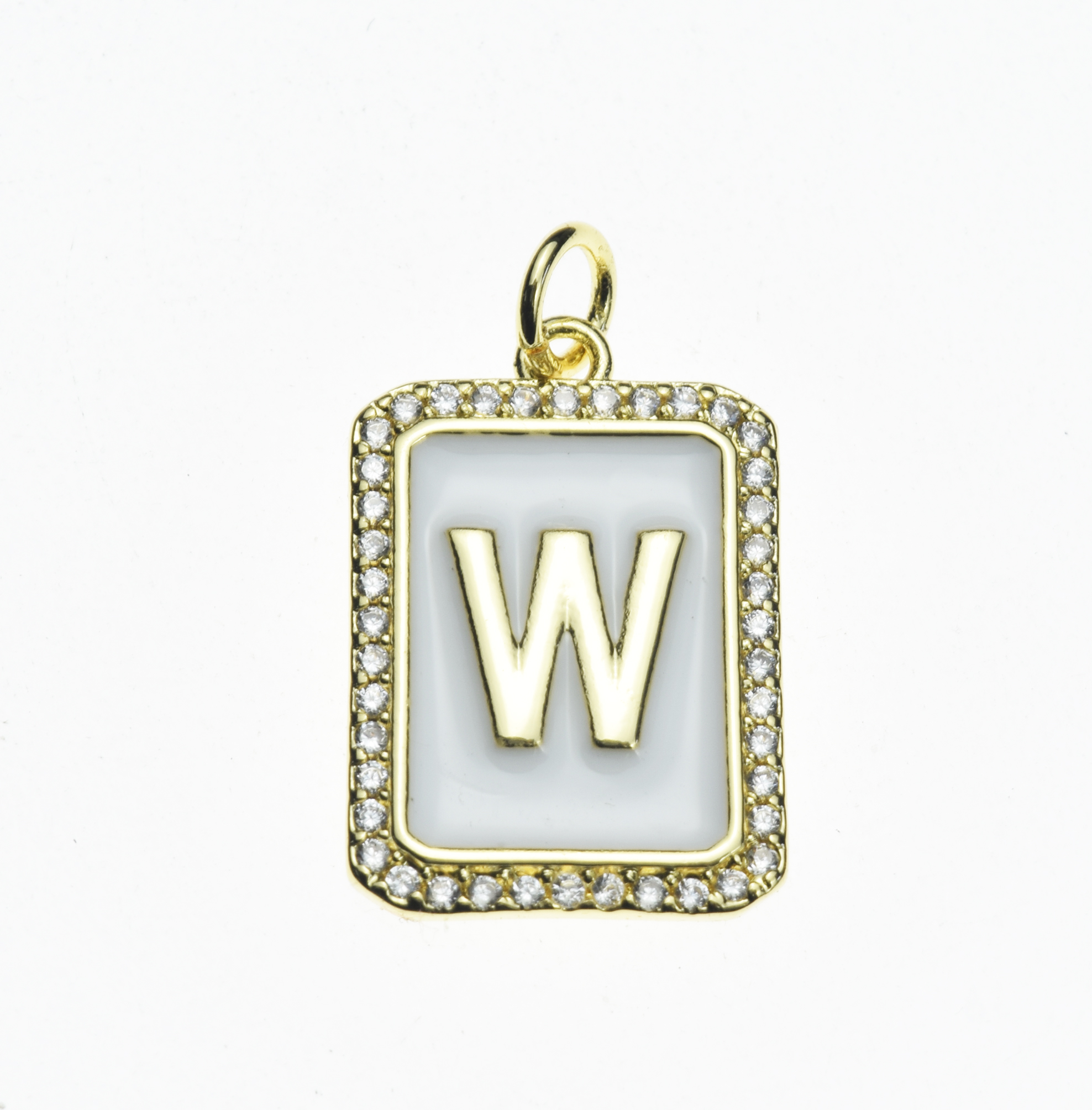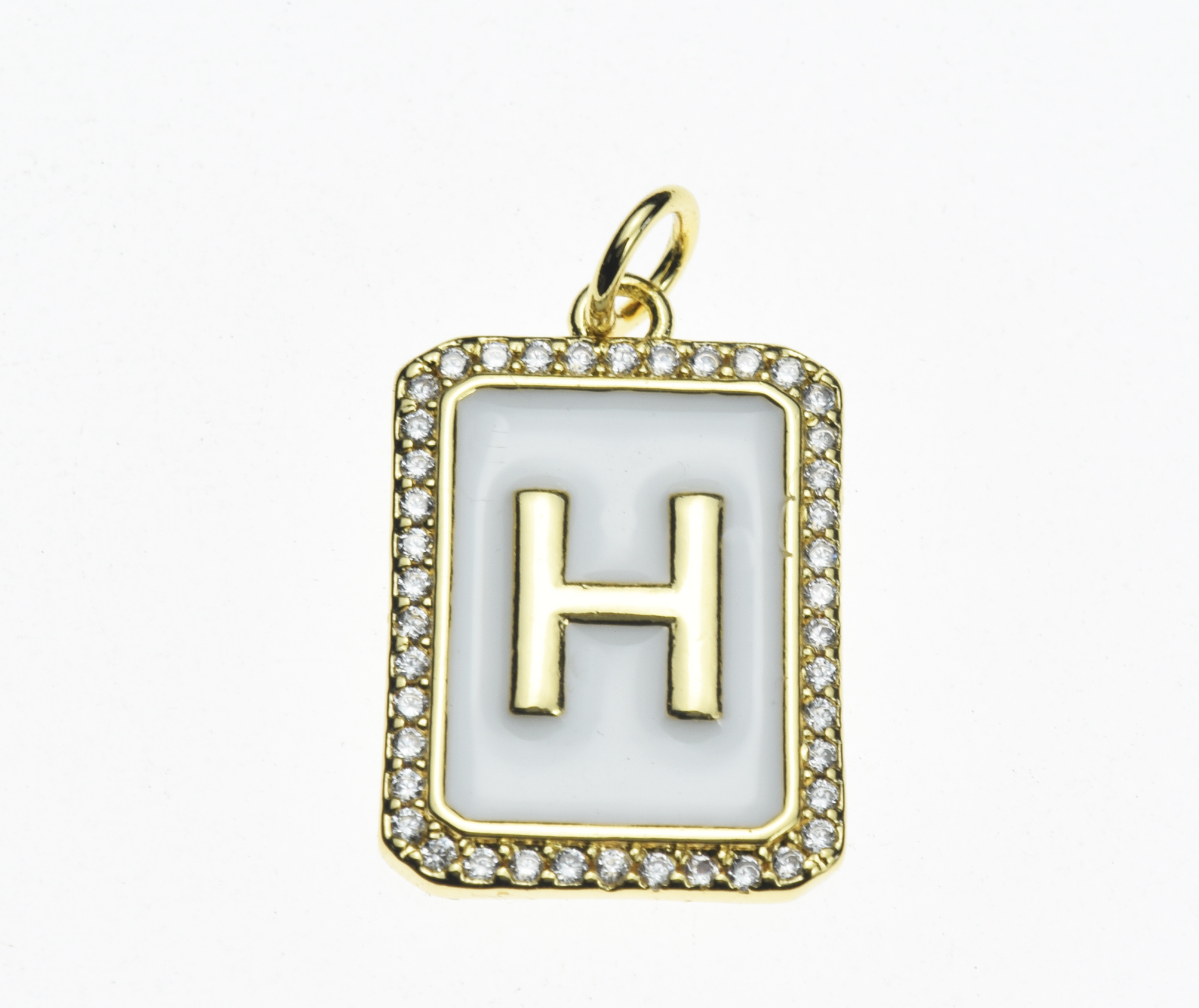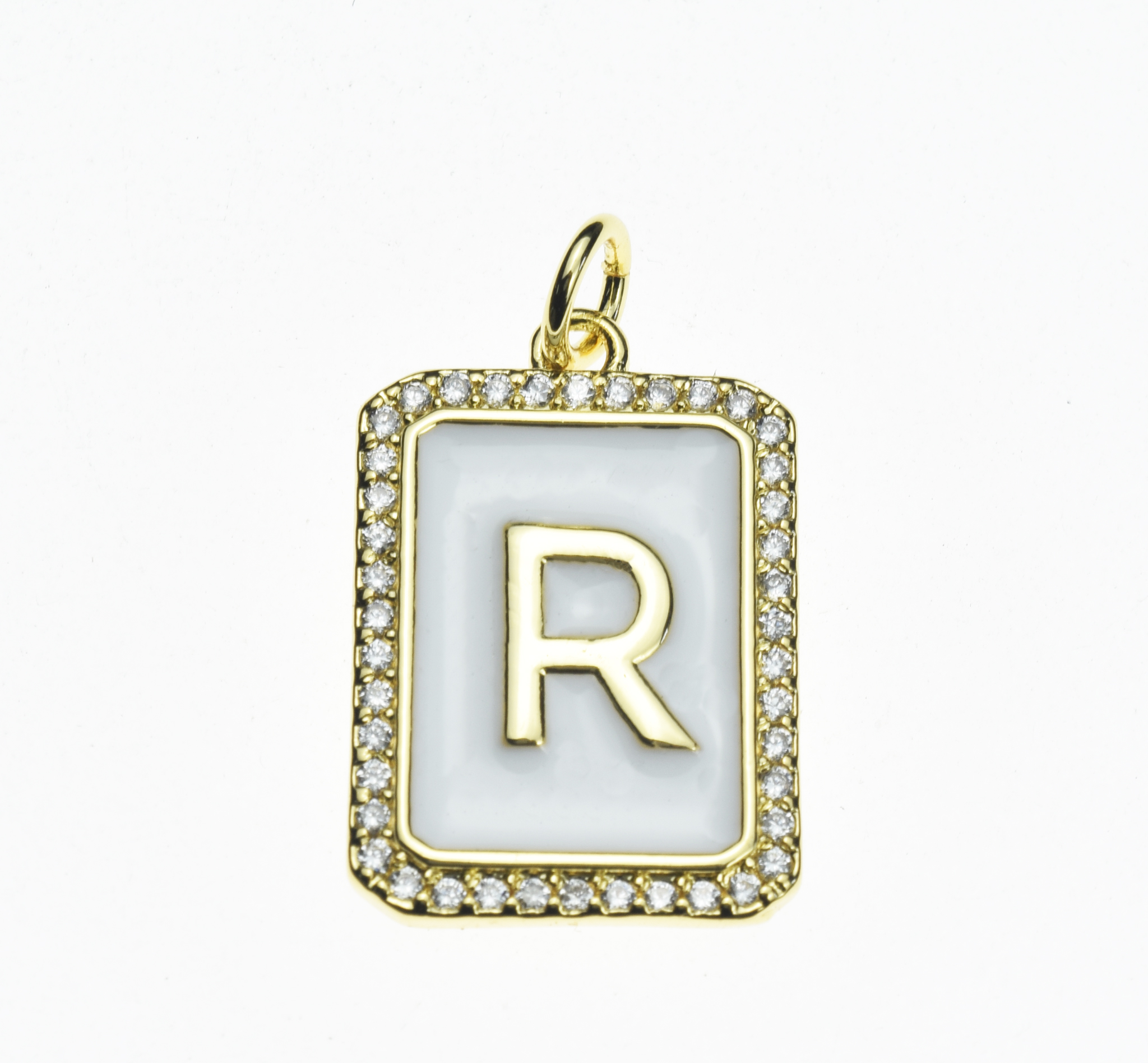 20X13mm Pave CZ Gold Alphabet Letter Enamel Pendants