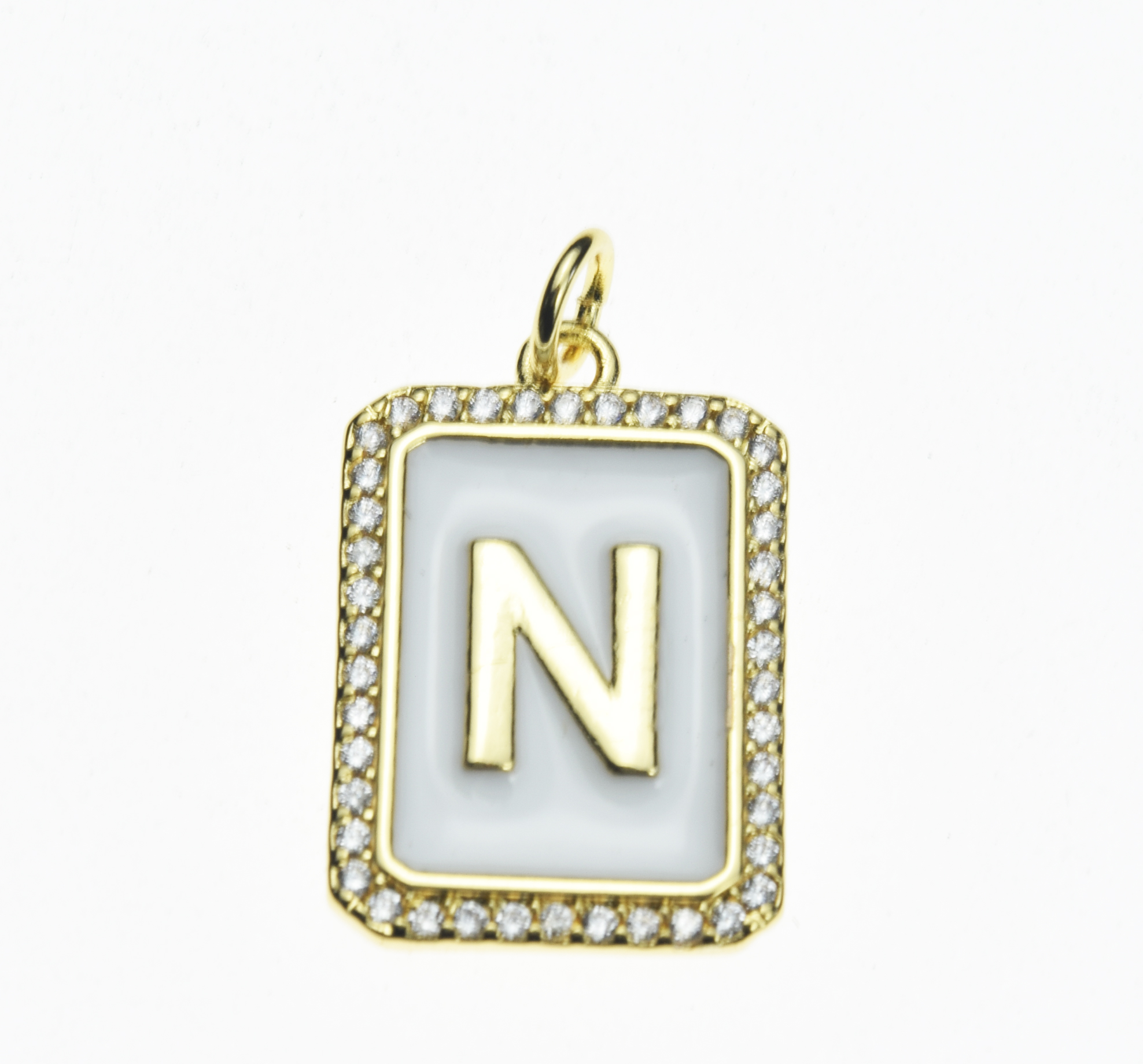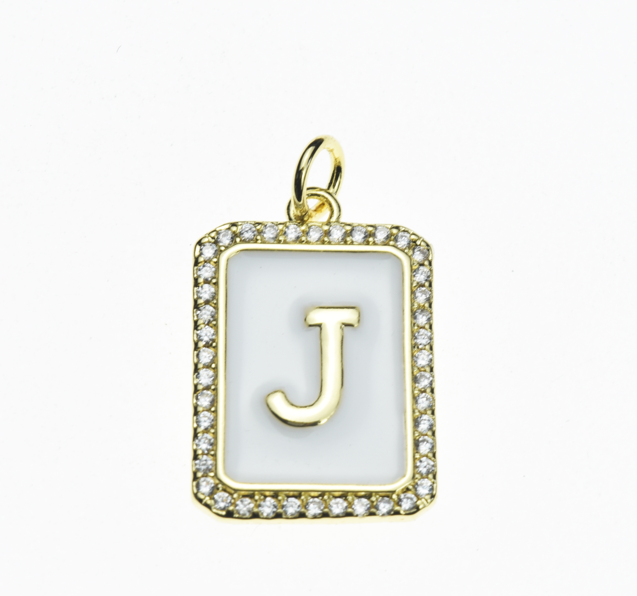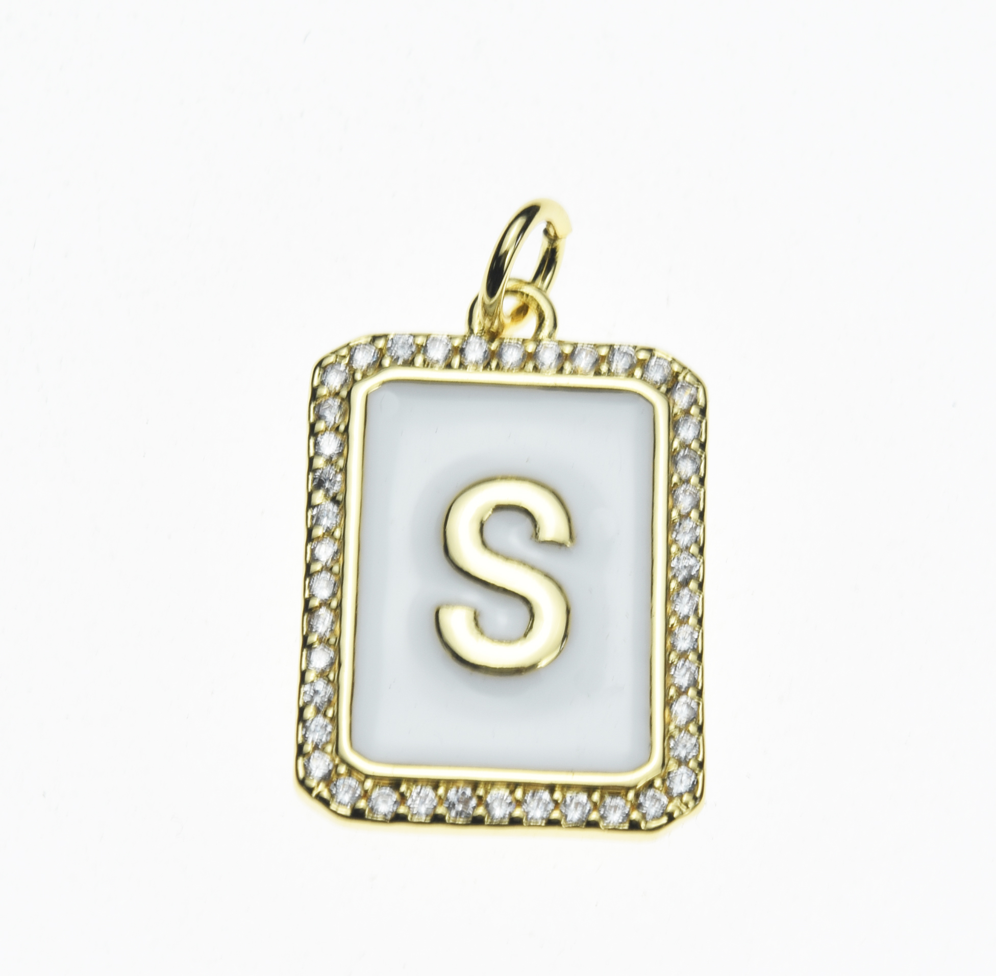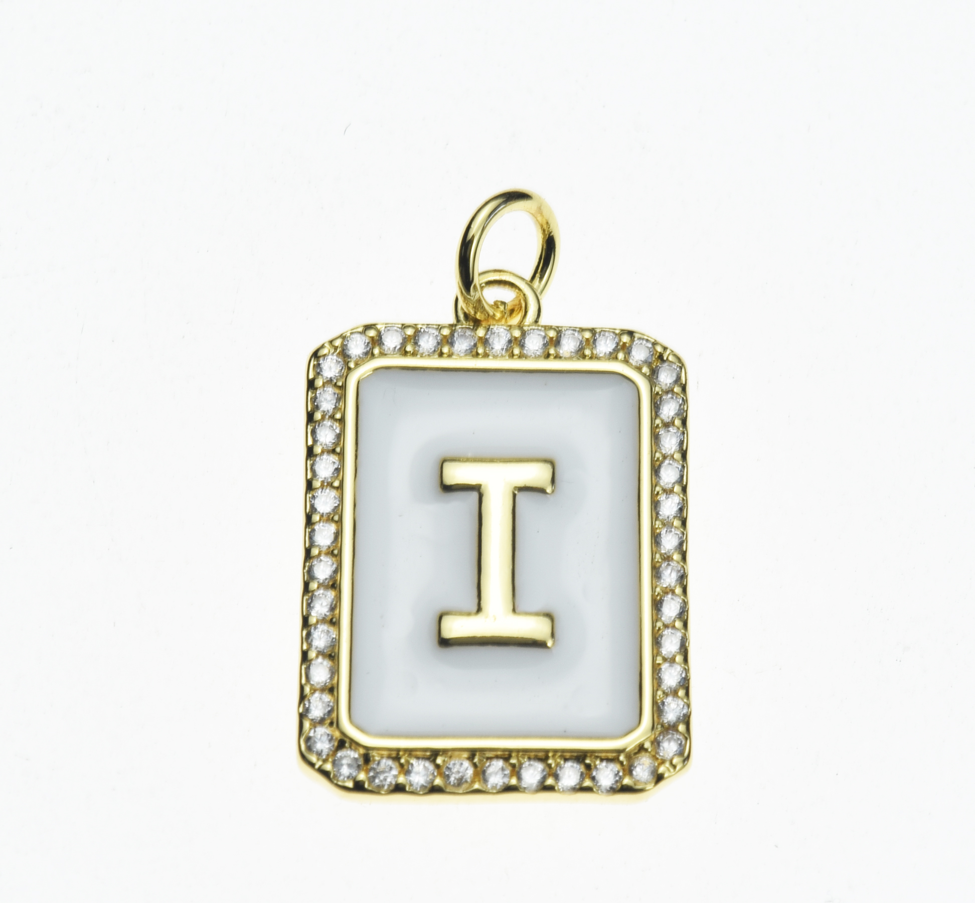 20X13mm Pave CZ Gold Alphabet Letter Enamel Pendants