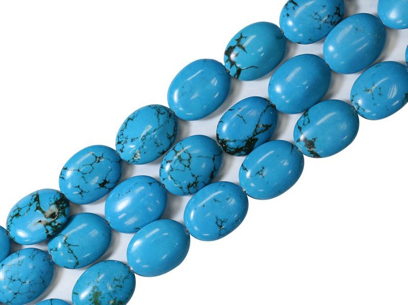 20x15mm Smooth Blue Turquoise Oval Bead Strand (17 Inches Long)