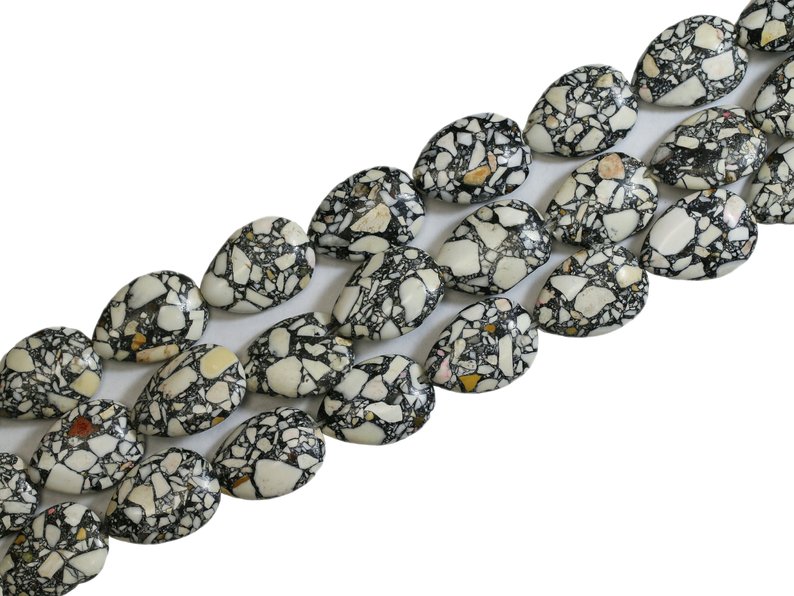 20x15mm Smooth White Mosaic Turquoise Teardrop Bead Strand, Tortoise Turquoise (16.5 Inches Long) quantity